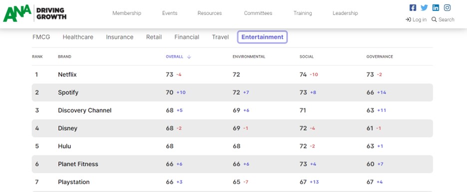 Kui me võtame sellise näitaja nagu The ESG Brand Perception Index-i siis näeme et seda juhib kindlalt Netflix. Kusjuures peab mainima et mõned firmad sellest reitingust eriti ei sõltu, mõned aga sõltuvad täiesti totaalselt. Selliste sõltlaste seas on kahjuks ka Netflix ja Disney. Selle nimel et hoida nimetatud indeksit kõrgel ja saada investoritelt ka edaspidi raha on firmajuhid valmis absoluutselt kõigeks.